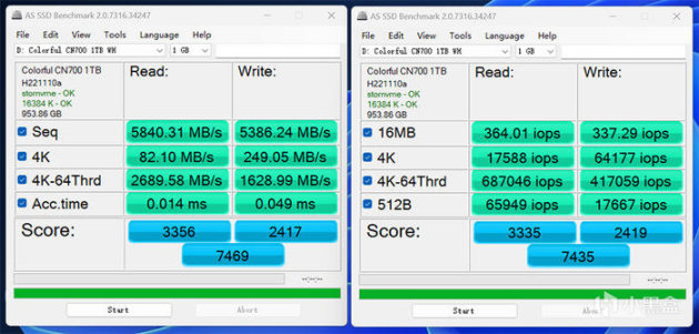 七彩虹 CN700 战戟 PCIE 4.0 1TB,SSD 跑分软件测试。
