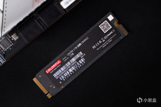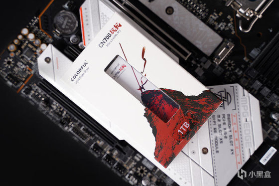 搭配 M.2 SSD 选用的是七彩虹新款 CN700 战戟 1TB,如今固态硬盘卷得不行,选用国产性价比更好,CN700 外包装采用红白配色,辅以对应品名的图案修饰,图案延伸至内 SSD 本体形成一体。