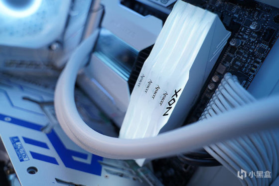 搭配白色内存,选用的是宇瞻 NOX 暗黑女神白色款 ARGB 幻彩灯条,填满!!!内存支持主流主板灯光同步,灯效也还是非常不错的,范围、亮度、均匀度都是 OK 的。