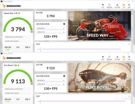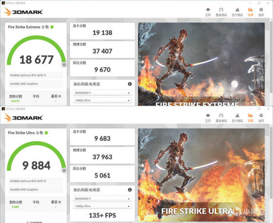 影驰 RTX3070TI HOF PRO,3DMARK 各种模式下的得分如上。
