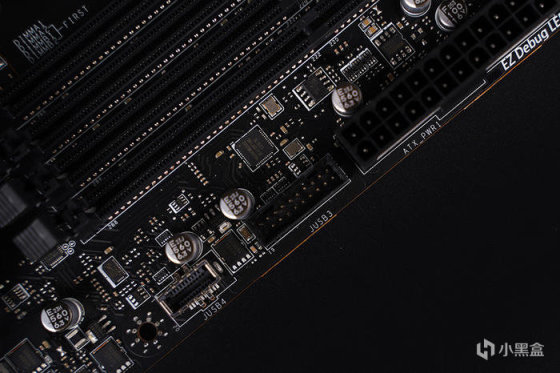 PCIe 扩展方面,搭配两条 PCIe ×16 长卡槽, 第一条金属加固 PCIe 5.0 ×16 带宽( 由 CPU 提供 ),另一条则为 PCIe 4.0 ×4 带宽,还有一条短的 PCIe 3.0 ×4 带宽。