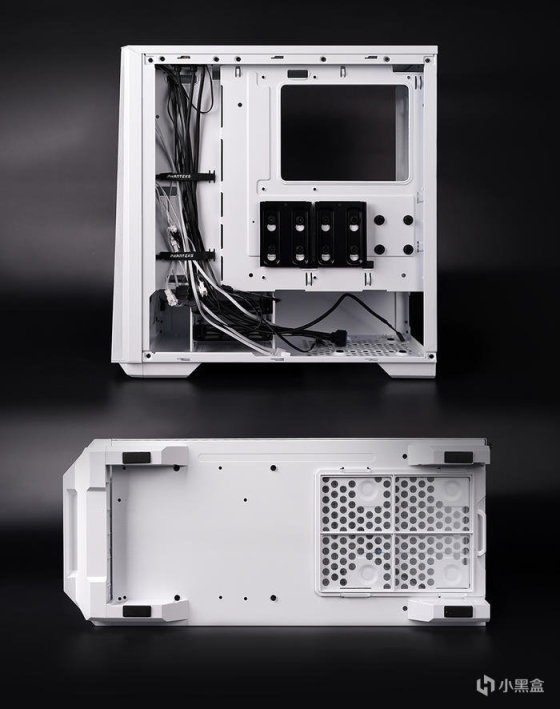 主板安装位置下凹设计,侧面位置有着大规模的走线开孔,隐藏式设计,这样可以有着更好的装机美观度。