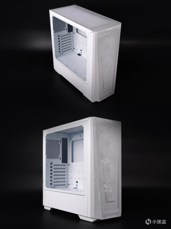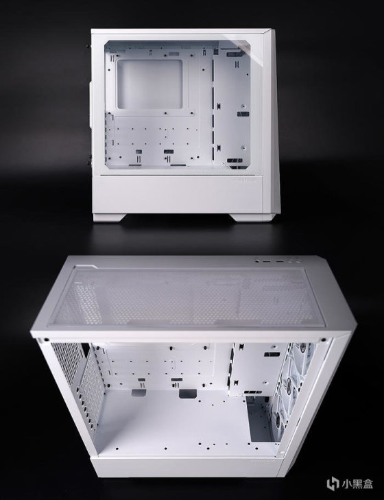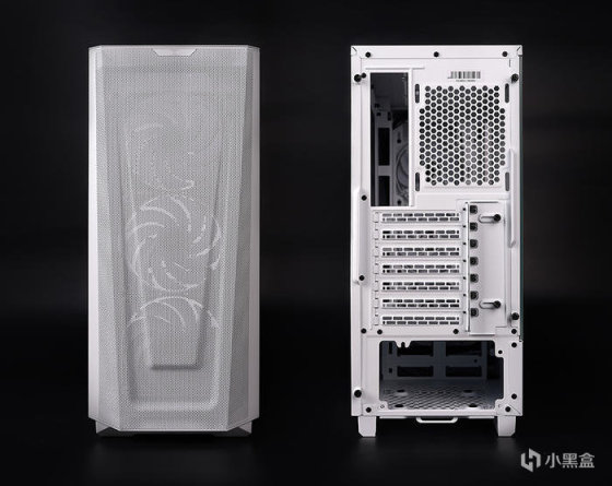 侧面玻璃不覆盖电源仓,无打孔设计,金属包边加固,通过尾部螺丝固定,内部最大支持 EATX 主板规格,塔式风冷最高 162mm,显卡最长 380mm。