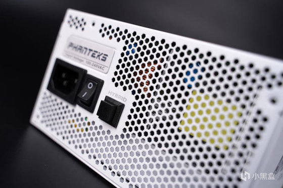 机身的尾部,给到大面积开孔出风,带有 AC 开关,另搭配有一个 HYBRID MODE 风扇停转模式切换按钮,默认按压为正常运行,松开则可以实现轻负载下风扇停转运行,从而实现零噪音的使用体验。