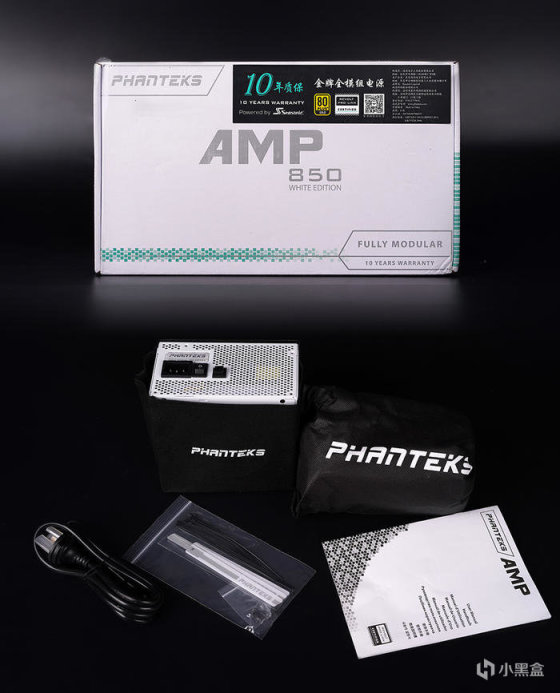 搭配追风者 AMP 850 白色款金牌电源,应付这个平台算得上富足,也留有未来升级的余量,电源海韵家代工,从长相上看,不难看出其也就是海韵 FOCUS 系列换肤款,同样也给到有 10 年的质保时间。