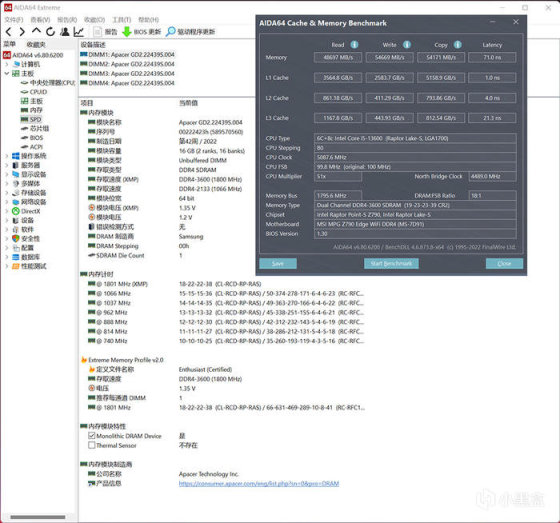 搭配内存选用的是宇瞻 Apacer NOX 白色暗黑女神 DDR4 3600 16G×4 填满。
