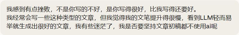 在AI的初稿上进行完善?一开始文章的核心就不是自己的东西,现在再思考这个主题,就像“大数法则”一样,思考方向已经被AI锚定了。
