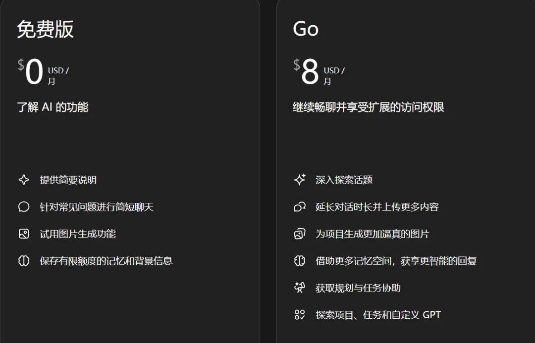 前两天,OpenAI 面向全球大多数地区推出了备受好评的 ChatGPT Go 服务(之前该订阅计划仅在印度区提供),定价8美元/月,不仅能用上最新的GPT‑5.2 Instant,还拥有免费版10倍的限制以及更长的上下文记忆。