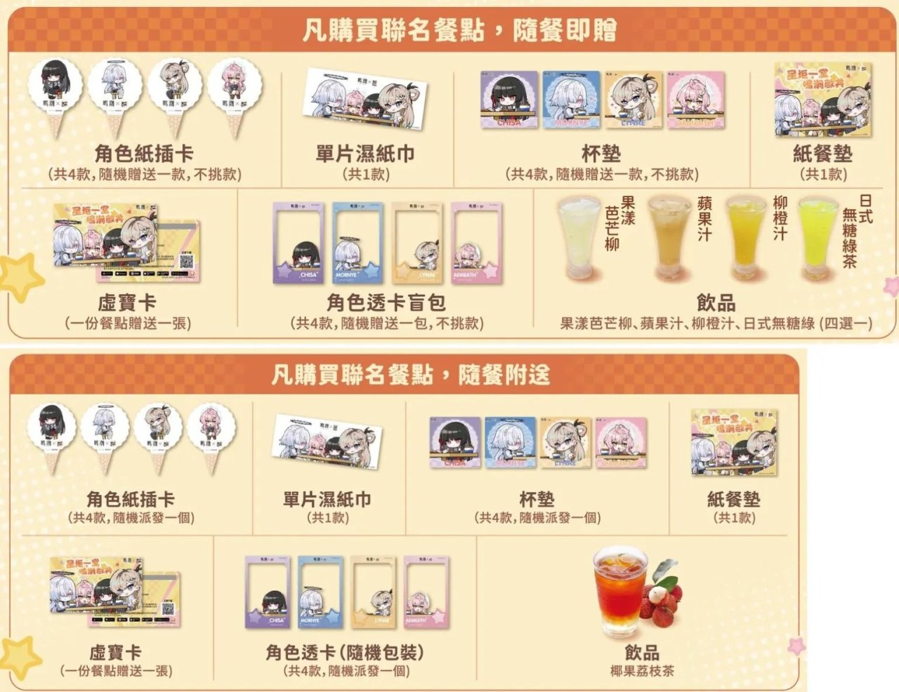 购买任意联名套餐,可获赠以下随机周边(特典款式不可选):