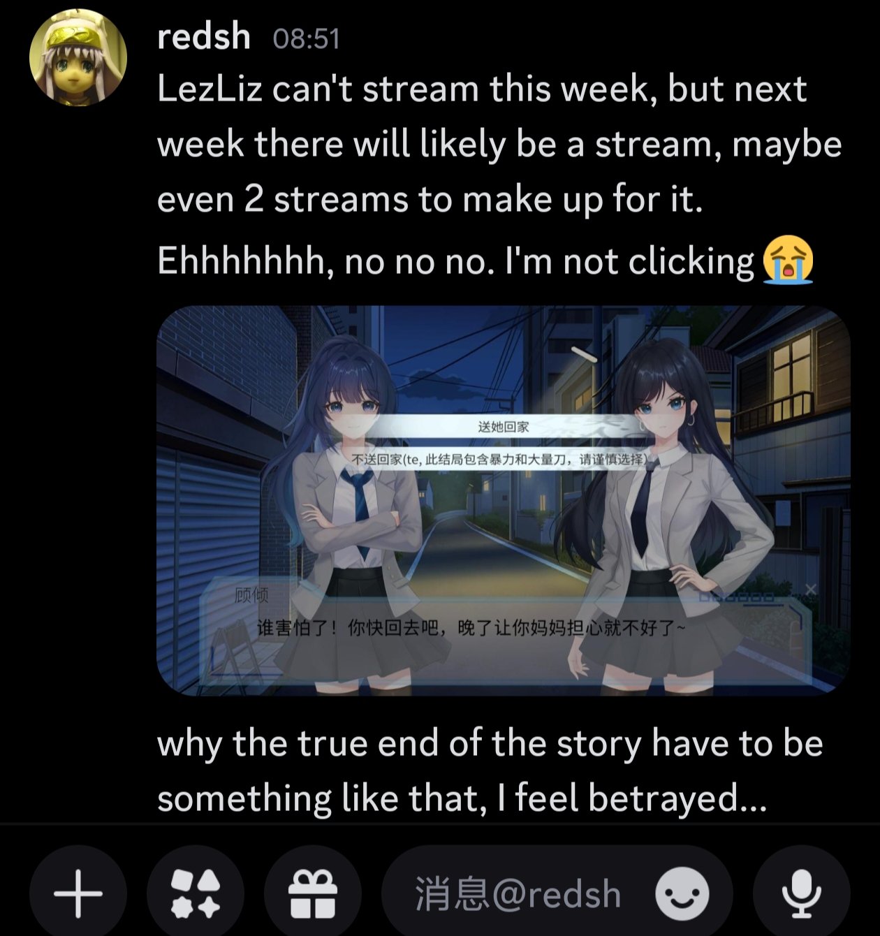 你可以在Steam上的各个yuri社区捕获他~redsh希望大家有兴趣的可以关注他和他翻译的游戏!好了今天就是这样,大家以后也一起来愉快地玩游戏吧~我是隔壁的该溜子ZH RPG制作组长Plones我们下期再见👋ノBye~