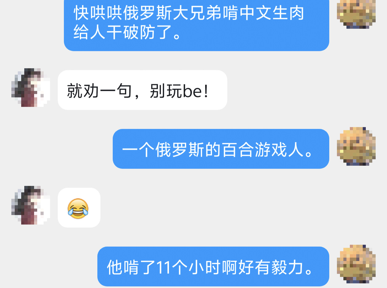 接下来是来自于🇷🇺的客场嘉宾redsh,他真的我哭死,超热爱国百独立小游戏。到目前为止已经完成了《秘密舞会》、《水畔空蝉》、《樱下花期》、《我们的日常》还有柚原堂的三部游戏以及同人《真夜的清晨瑰夏SOE》的英翻,甚至还给SOE做了itch.io上的网页版,他简直是下凡的百合👼。大兄弟应该是考虑到受众面和文本长度选择做了英翻而不是俄翻,俄文那个低信息量翻译以后文本宽度真的蹦的太长了能翻2倍不止……有的得专门做UI和文本框适配。
