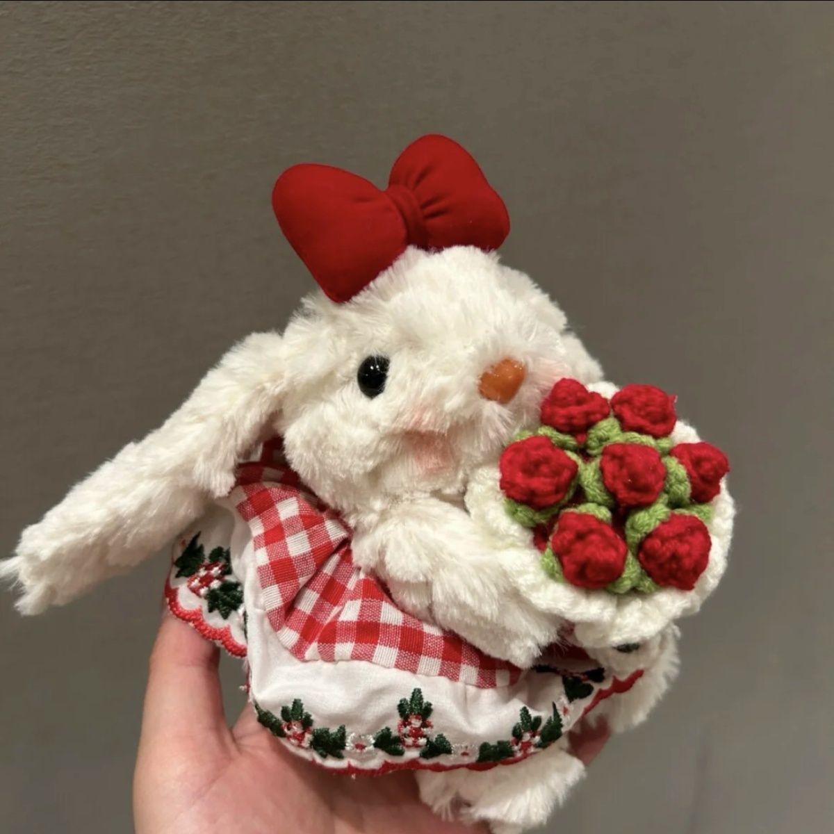 这种手捧花小兔子有很多款式,pdd和tb上都有,直接按图搜索即可