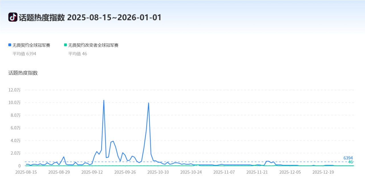 那怎样增加赛事的观众呢?一是提升办赛水平,二是增加宣传与观看渠道,三是提高比赛质量。前两点看钱,第三点看选手实力,这个我们后面再说。前两点我认为最有性价比的提升方法就是将女子赛事与其他赛事相融合,而不是但列出来个女子联赛。举一个反面例子,无畏契约改变者赛,在每年的全球冠军赛后举行,现在各个赛区选出队伍,再进行改变者全球冠军赛。可以说这个改变者赛是完全平行于VCT赛事,只是少了一个赛段和大师赛。改变者赛事与VCT赛事无任何联动,这是一张抖音全球冠军赛和改变者冠军赛的话题热度图,可以看到完全不是一个级别的。