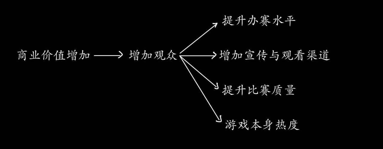 那我们的方向就很明确了,增加女子选手曝光,提升对局水平。什么地方曝光多,对局水平高呢?不就是大赛吗,给女性选手大赛名额,商业价值就能提升,投资就会增加,可以寻找高水平选手,赛训水平也会增加,再加上高质量的训练赛与大赛经历,战队的水平就会提升,商业价值又提升,形成正向的循环。