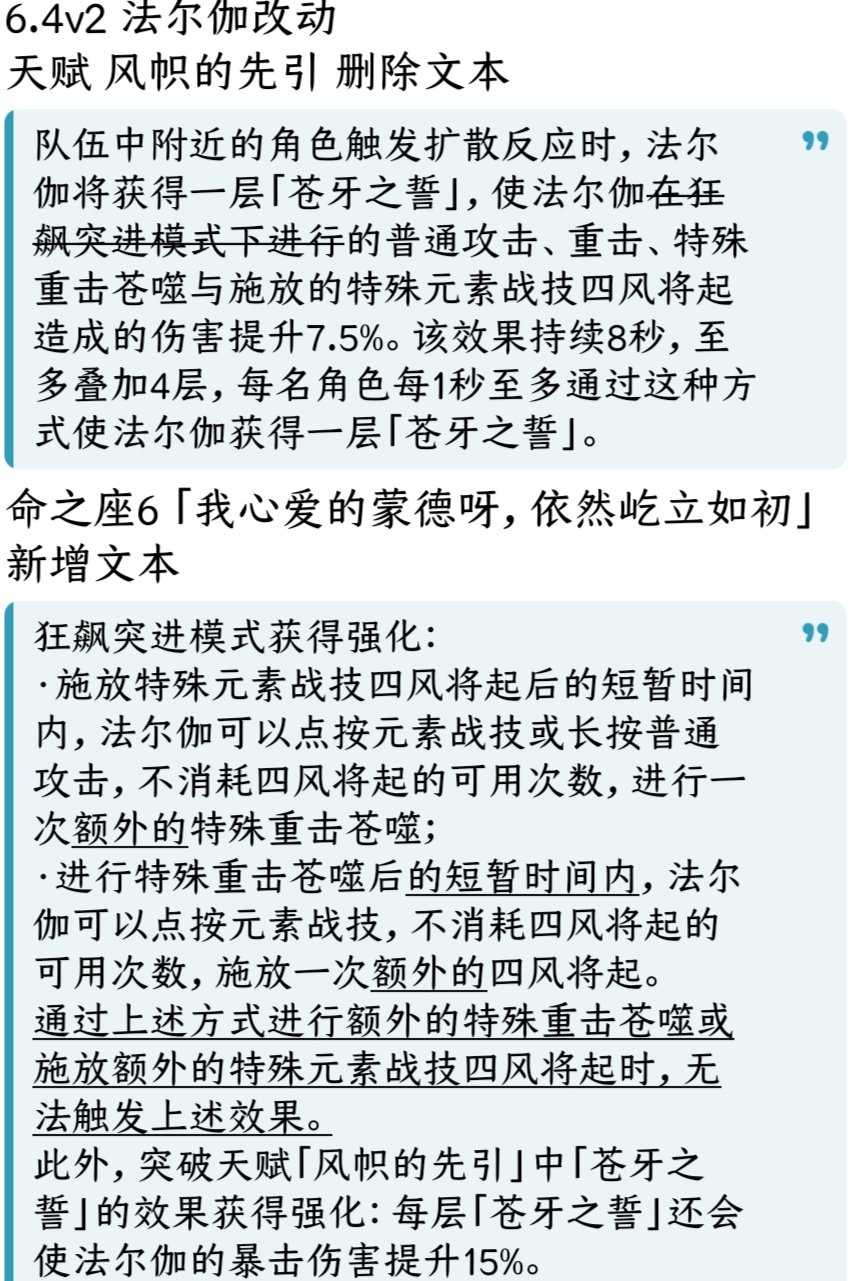 ·进行特殊重击苍噬后的(短暂时间内),法尔伽可以点按元素战技,不消耗四风将起的可用次数,施放一次(额外的)四风将起。