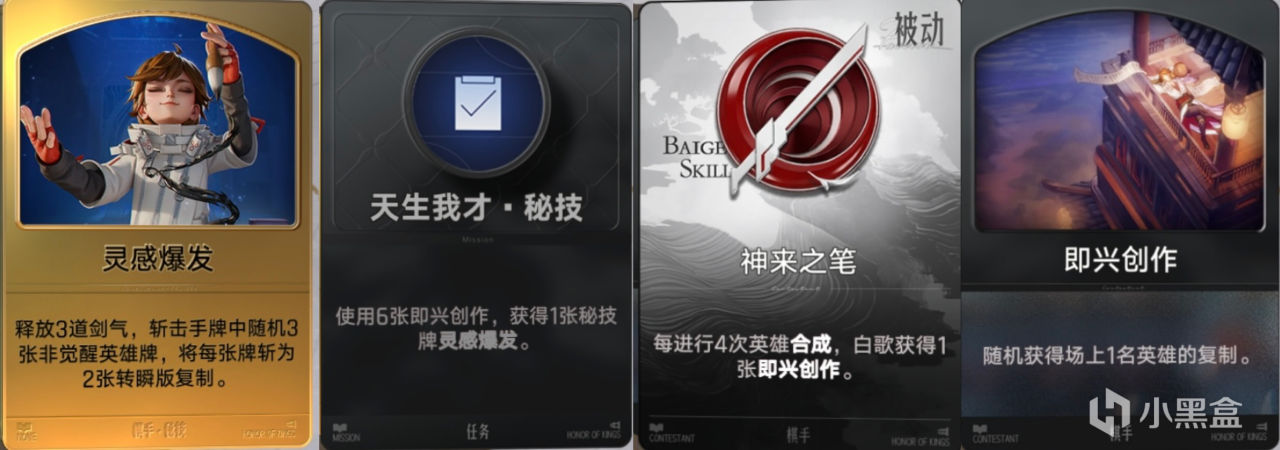 在《王者万象棋》中,可爱的棋手不再是传统自走棋中的“花瓶”,而是拥有可以改变游戏玩法的专属能力和成长天赋。以棋手白歌为例,其专属能力“神来之笔”在四次英雄合成后会获得一张“即兴创作”牌,使用“即兴创作”牌可以随机获得场上1名英雄的复制牌,在使用6张“即兴创作”之后会触发白歌的秘技“天生我才”,获得秘技牌“灵感爆发”,斩击手牌中的3张非觉醒英雄牌,将每张牌斩为两张转瞬版复制。这种每个棋手都拥有专属能力的设计让棋手参与进游戏,改变了玩家的资源转换策略与阵容构建节奏。