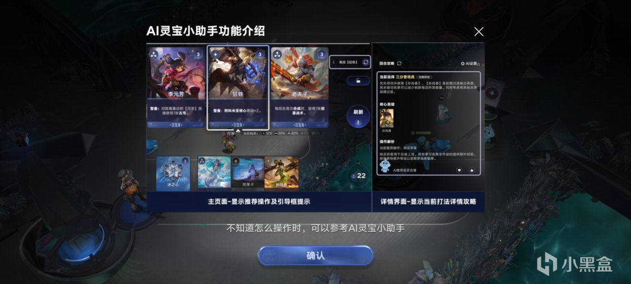 同时游戏内接入AI小助手灵宝提供实时决策支持,它会根据玩家当前阵容、手牌和局势,提供从“购买哪张牌”到“如何摆放阵容”的具体建议,即使是对自走棋完全陌生的新手,全程跟随灵宝提供的建议也可以收获完整对局体验,甚至拿下对局第一名。