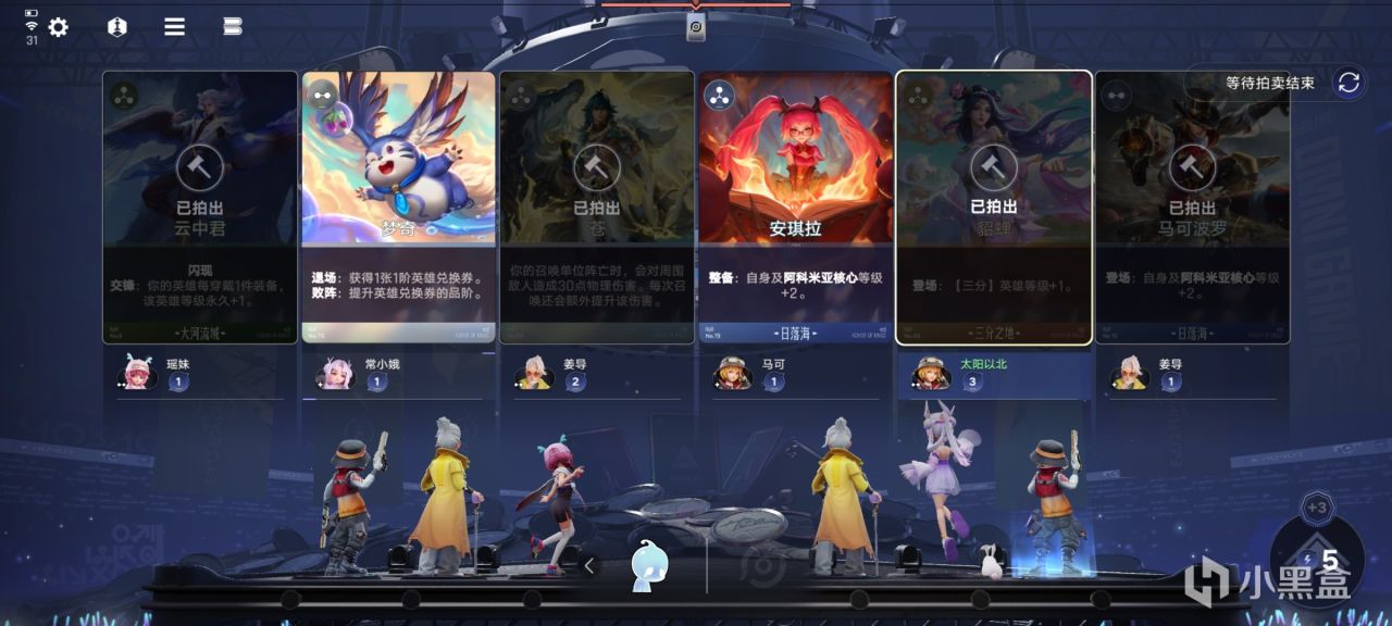 《王者万象棋》局内并没有棋子备战区,打出的英雄牌只能通过售出才能下场,这种“落子无悔”的机制增加了决策权重,要求玩家在放置英雄牌之前慎重考虑阵容搭配。同时每场游戏出现三次的拍卖会机制也让战局瞬息万变,落后的玩家可以在拍卖会中抢到强力英雄牌或效果卡扭转逆势,为玩家提供绝地翻盘的机会。