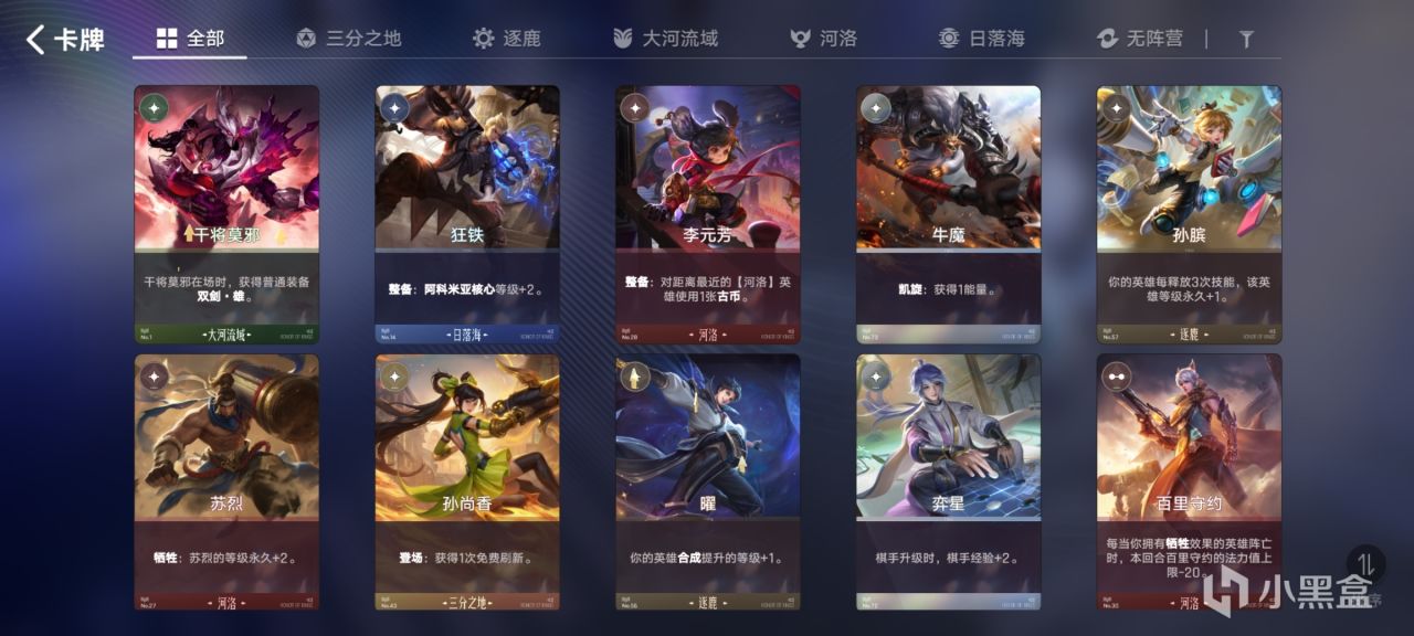 《王者万象棋》还摒弃了传统自走棋中公式化严重的“羁绊”系统,用更自由、策略玩法更丰富的卡牌关键词组合替代。游戏将英雄牌划分为三分之地、河洛、大河流域等六大阵容,这并不是给英雄设定强制羁绊,而更多是对英雄牌进行简单的分类。真正的策略核心在于每张英雄牌自带的“卡牌关键词”效果以及它们间的联动可能。