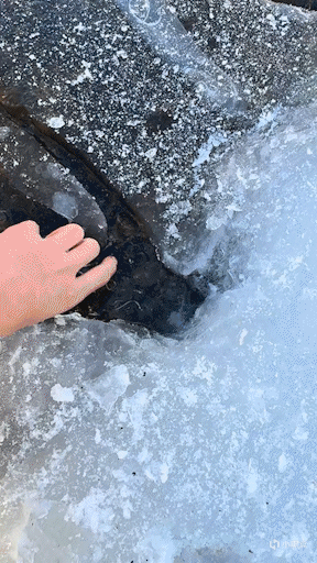 事情是这样的,这不刷到一个博主(@小土豆)的一个视频,开始只是看他把手伸向一个冰洞里掏什么,正好奇他手冷不冷的时候,突然他的手从冰里抽出了一个: