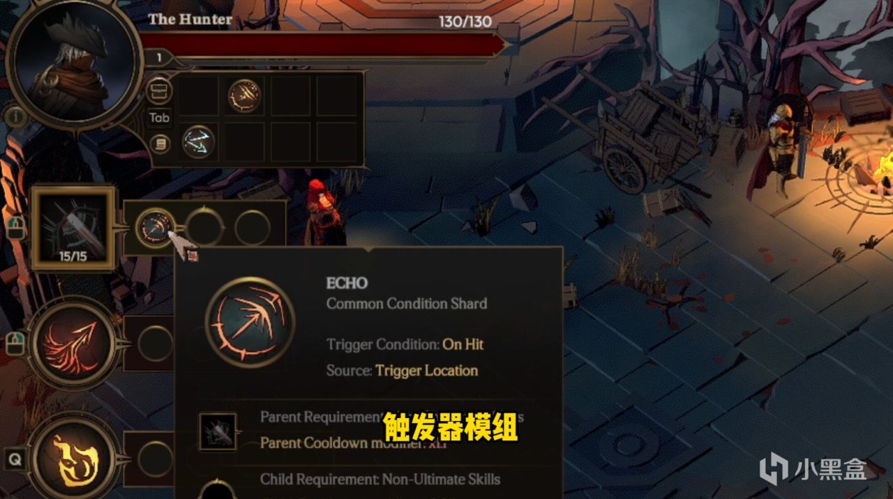 然后它也是有类似《魔法工艺》那种法术形态构筑玩法的,但具体机制可能更接近《流放之路2》那种,就是在主动技能后面的槽位里可以放入各种形态变化被动效果模组,而且它还有各种条件开关触发器模组,就是可以让前面的主动技能以某种条件触发后面的主动技能,并附加各种效果,这样你就能搞出各种套娃式的构筑了。
