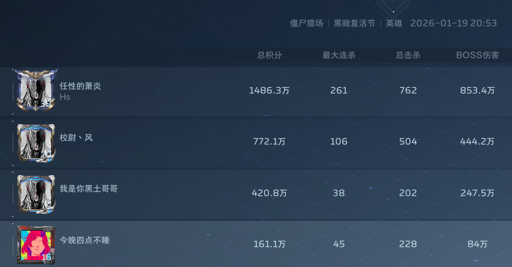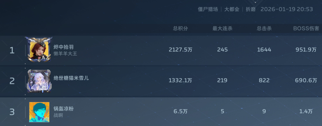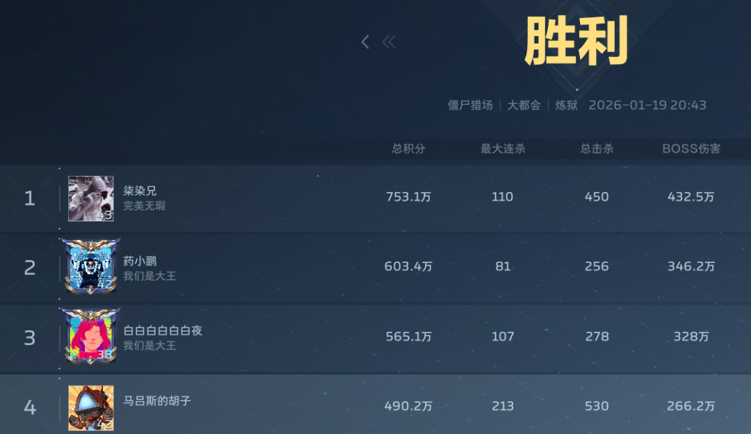 因为他一直在速通十多分钟的大都会,有时候第一有时候第四,我很难判定,但这把确实是炼狱,第四。