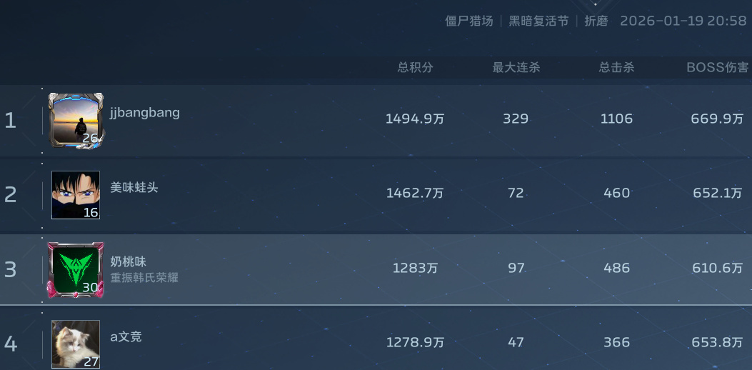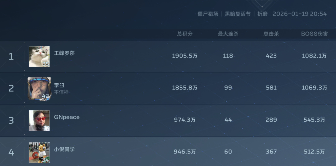 折磨,第三名。但他们四个人输出几乎一致,没什么好说的。