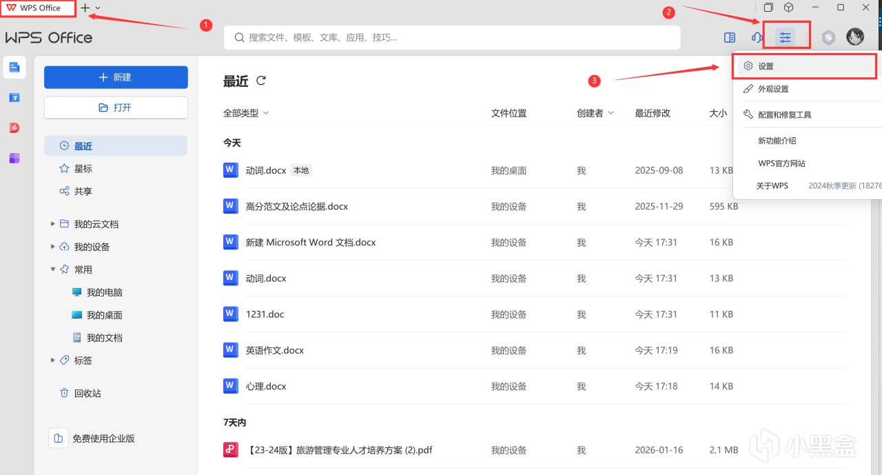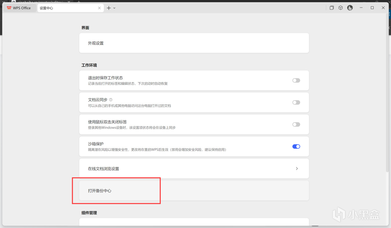 点击【WPS Office】,再点击右边的设置