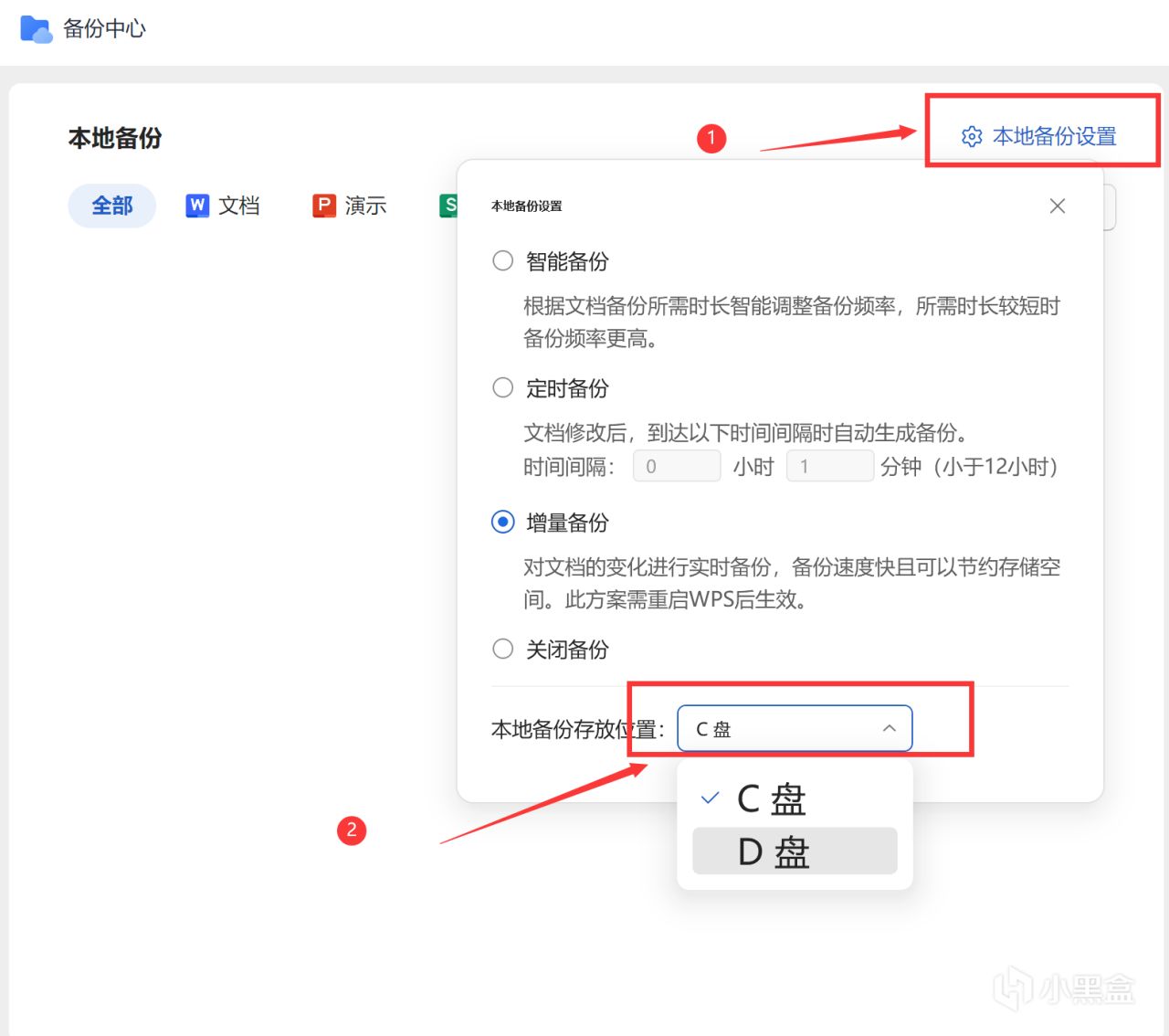 2.让本地备份不存放到c盘中