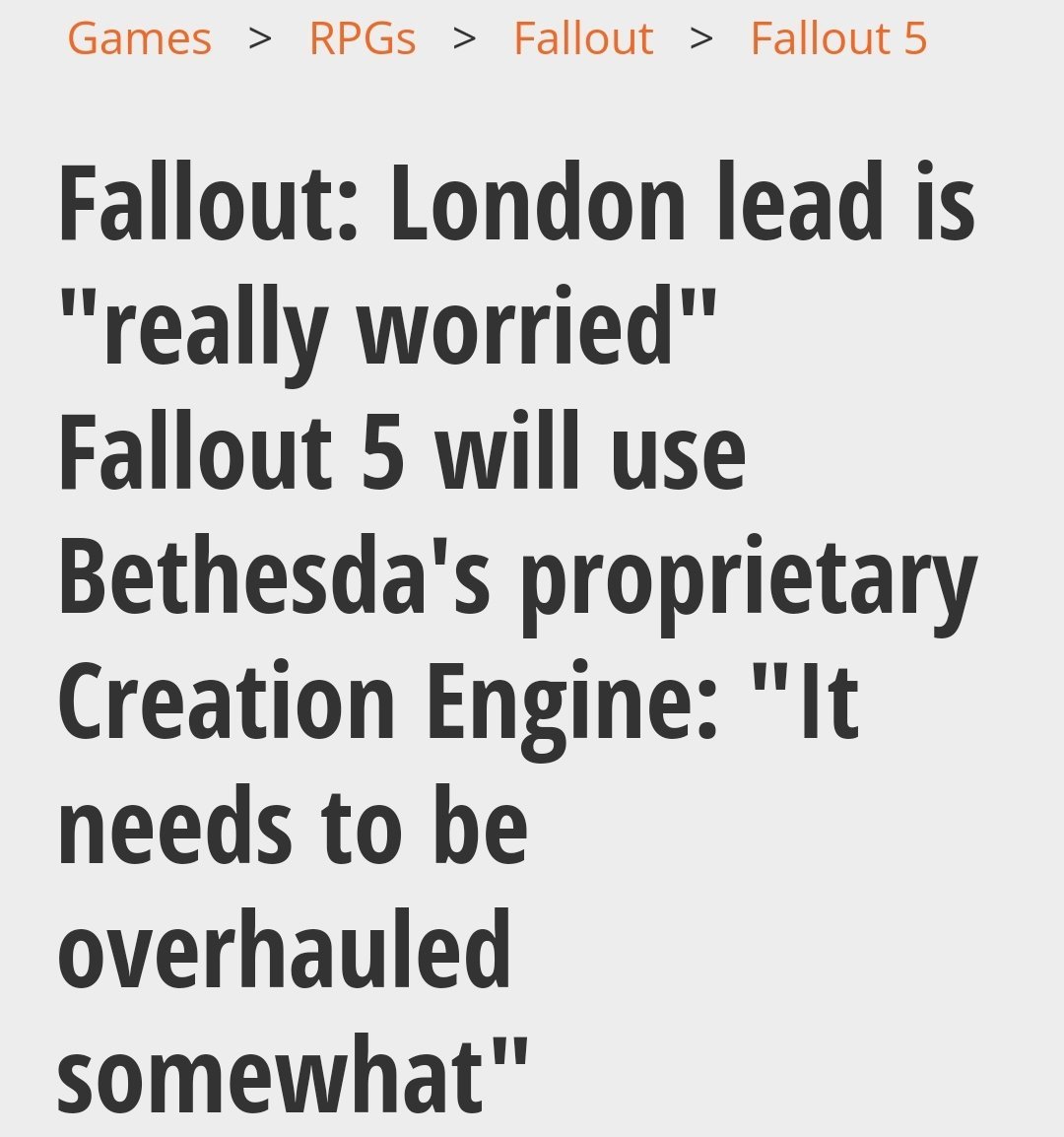 迪恩·卡特 是 Team FOLON的项目负责人。他领导了这个由数百名志愿者modder组成的团队,历时7年开发出《辐射:伦敦》——一个免费的、独立安装的大型mod,基于《辐射4》。《辐射:伦敦》 的规模堪比完整DLC或小型续作:全新伦敦地图、数百小时内容、新派系、任务、语音配音等。2024年7月正式发布后,广受好评,但也因优化问题被诟病。mod的成功让它成为《辐射》社区的“现象级”作品,尤其在亚马逊Prime剧集爆火后。记者问卡特,希望《辐射5》借鉴《辐射:伦敦》的哪些“成果”。卡特没直接答先吐槽引擎,他担心贝塞斯达会继续使用自家的Creation引擎,且不对其进行重大改动。在他看来,等到《辐射5》发售时,这款引擎要么彻底重构,要么就换成其他技术。