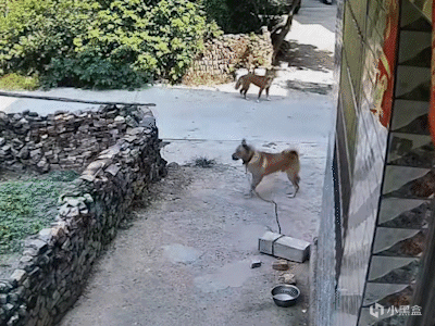 事情是这样的,看到一个博主家门前路上路过了一只小黄狗,看见大黄狗被铁链拴着,就低声蛐蛐人家大黄。大黄狗被铁链拴着死死的,没办法,就只能对着小黄大叫。
