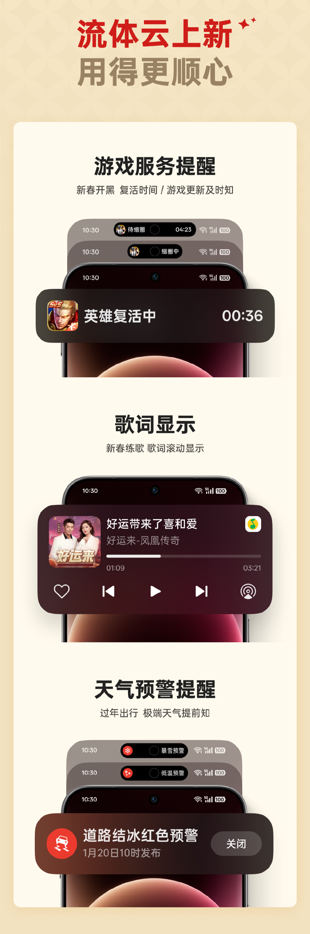 流体云上新游戏服务、歌词显示、天气预警提醒,新春娱乐出行更舒心;