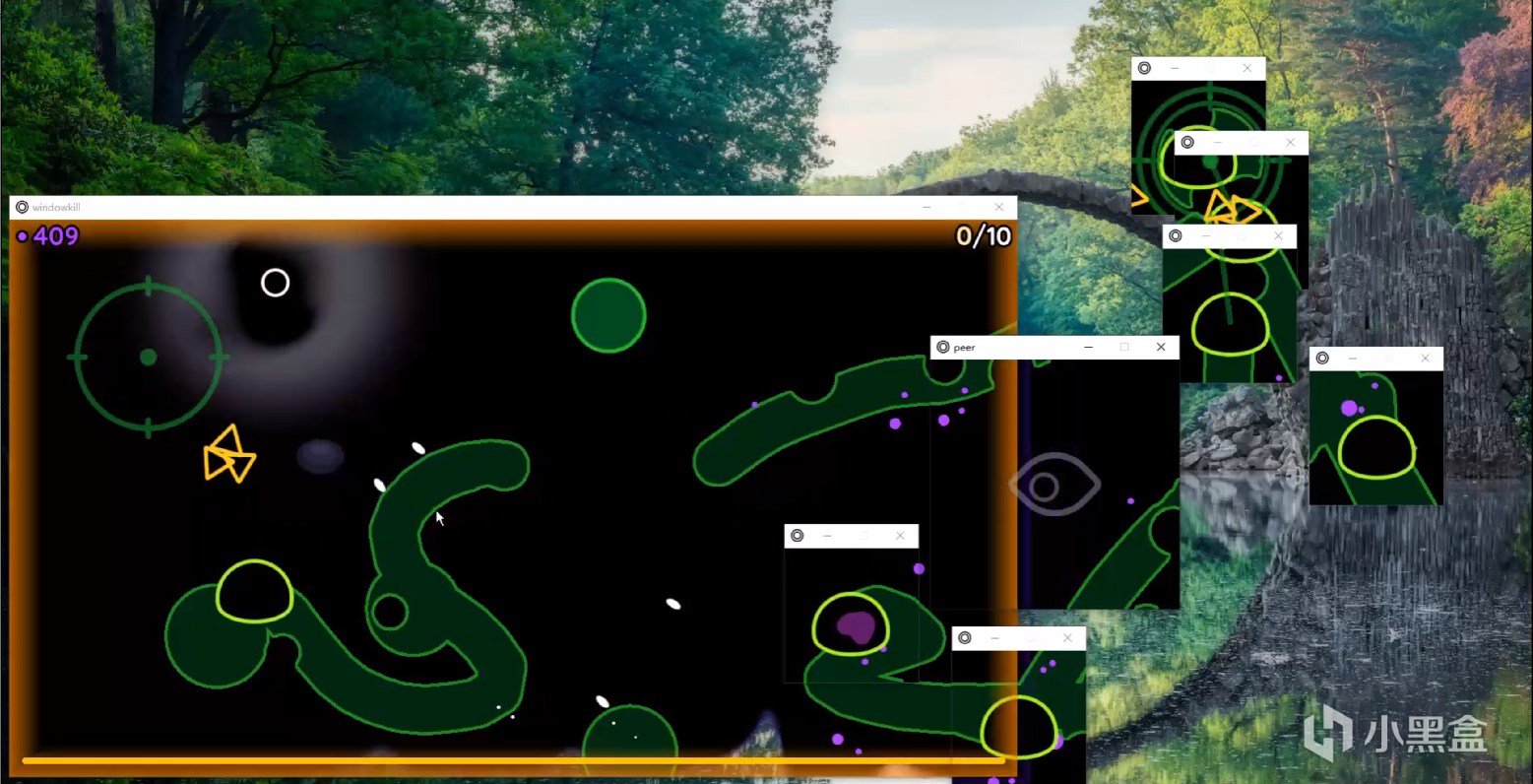 比如有一个毛毛虫boss和史莱姆boss,毛毛虫自己的每一小节身体在玩家窗口外时都会生成一个独立窗口,史莱姆分裂的每一个小史莱姆也同样如此。