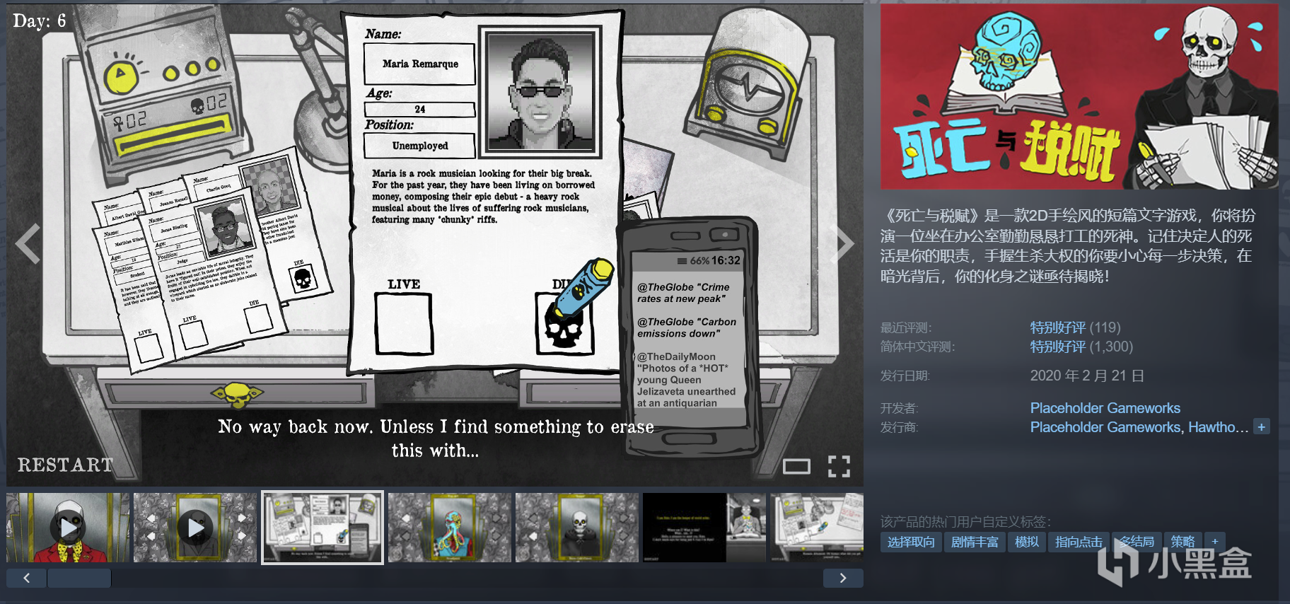 2.《死亡与税赋》2D手绘风的短篇文字