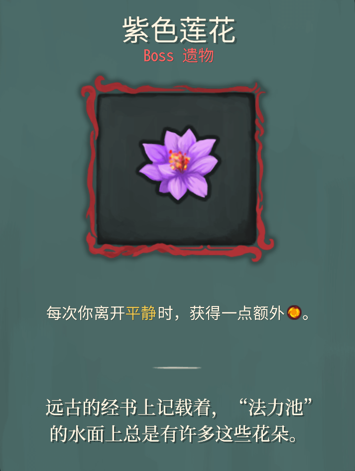 紫色莲花:这也是小二认为最适合这个流派的遗物,离开平静能够多获得一点费用,有了它我们无限流成型的概率会大幅提升。