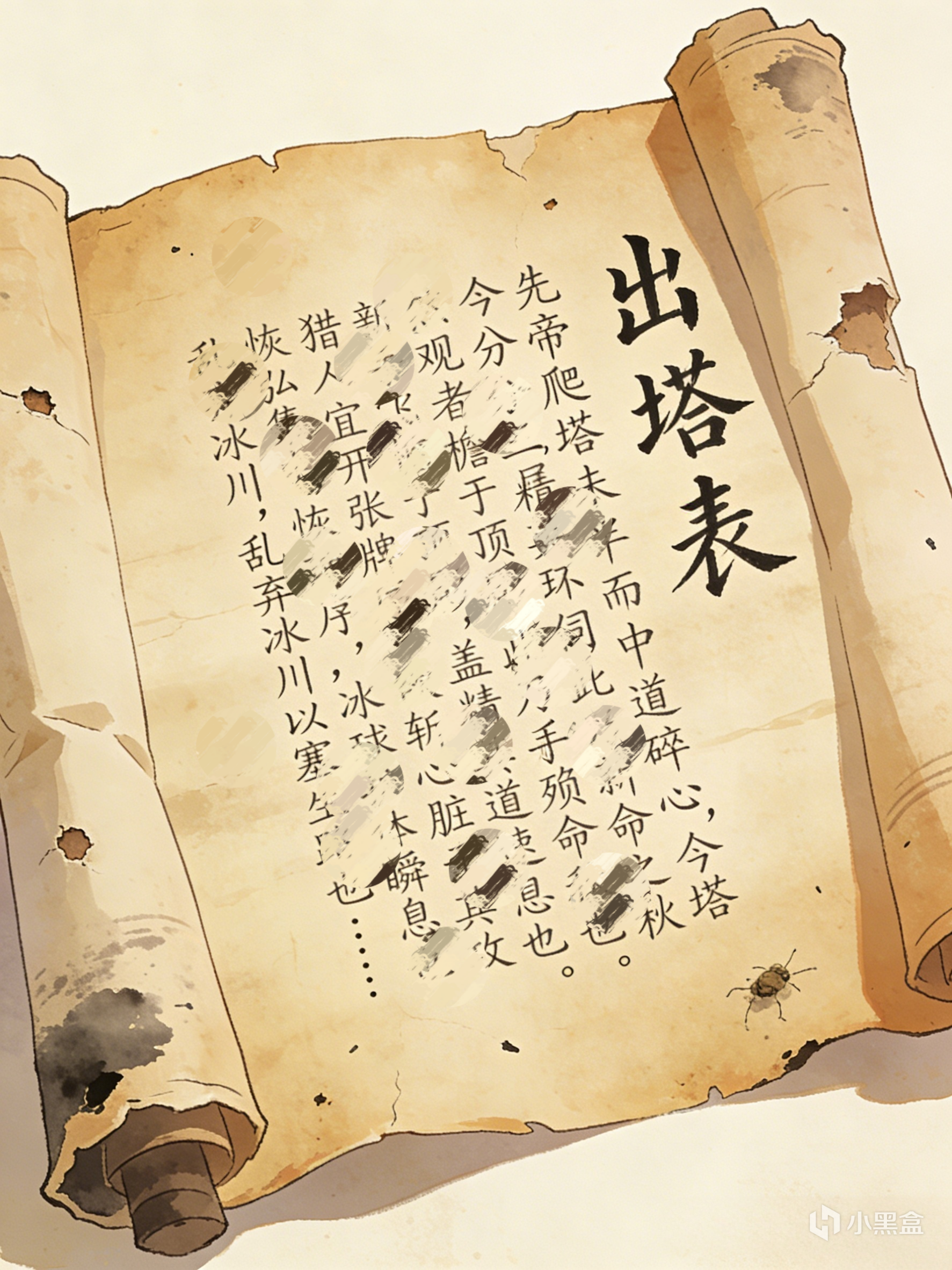 在锈迹斑斑的机器人身旁,还有一个已经残破的卷轴。打开一看,居然是一篇文章,名字叫做《出塔表》。