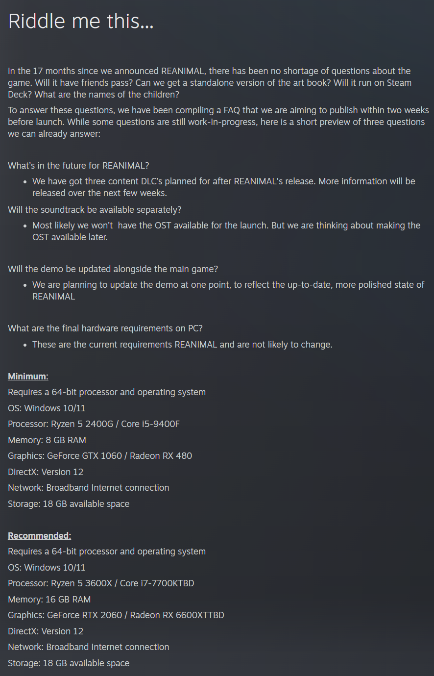 计划在游戏正式发售后推出三个剧情DLC。详情将在未来几周内公布。