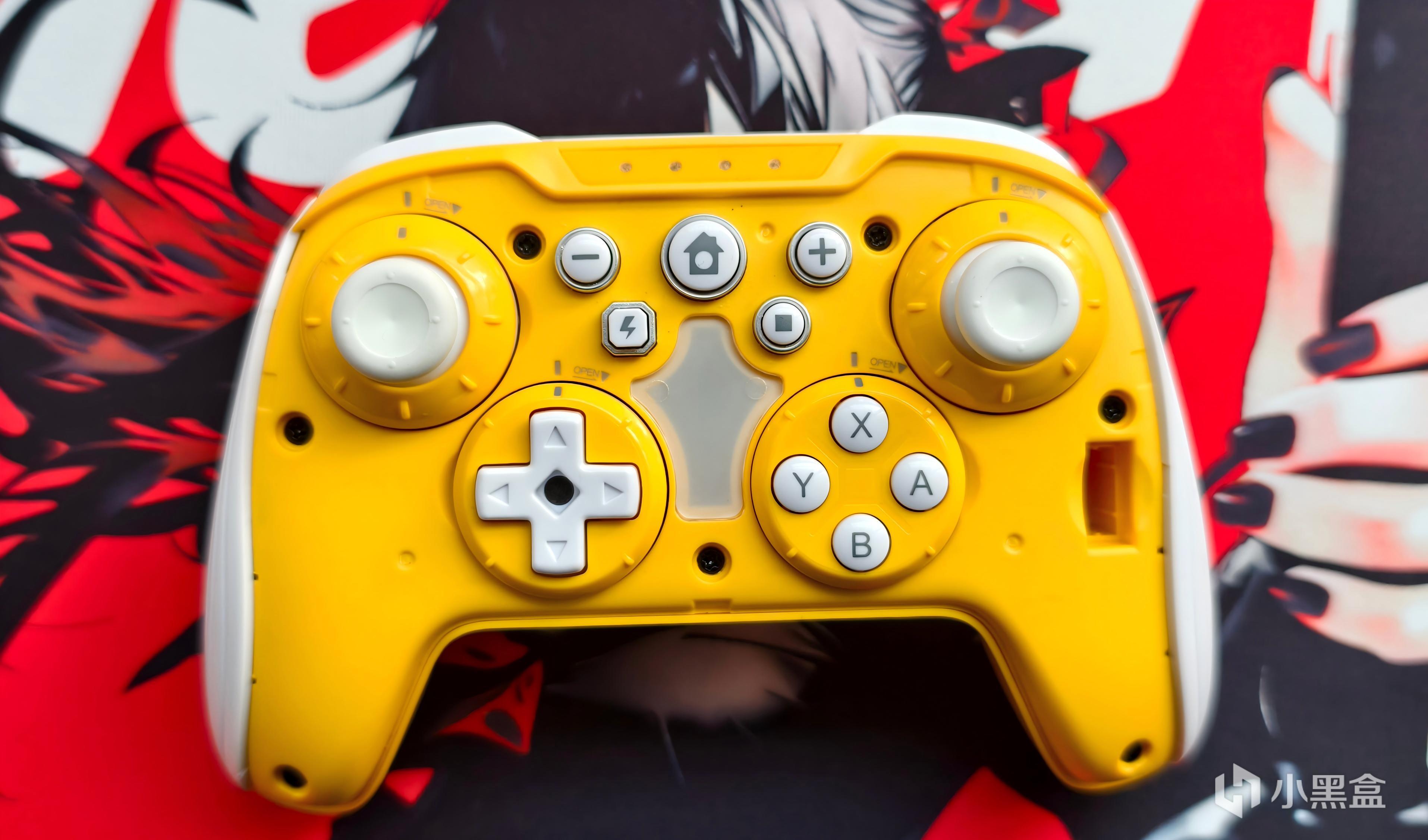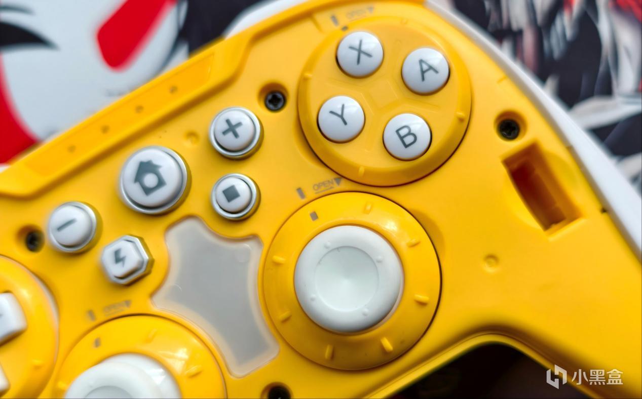 另外,让我没想到的是它还拥有四颗背键,应该用的都是锅仔片。背键位置倒是也比较合理且支持12步编程,只是下面两颗不够稳定。中间那个白色的圆盘其实是十字键盘面,可以直接扣在十字键模块上使用,而十字键采用的是轻触开关,手感还可以。
