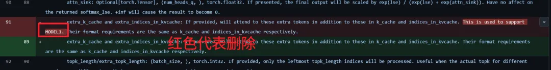 提交说明看起来只是一些小调整,但实际上,像“extra_k_cache 用于支持 MODEL1”这样的表述被统一模糊化,MODEL1 专属的 KV cache 对齐要求、head 维度、FP8 稀疏块结构等信息也一并消失。
