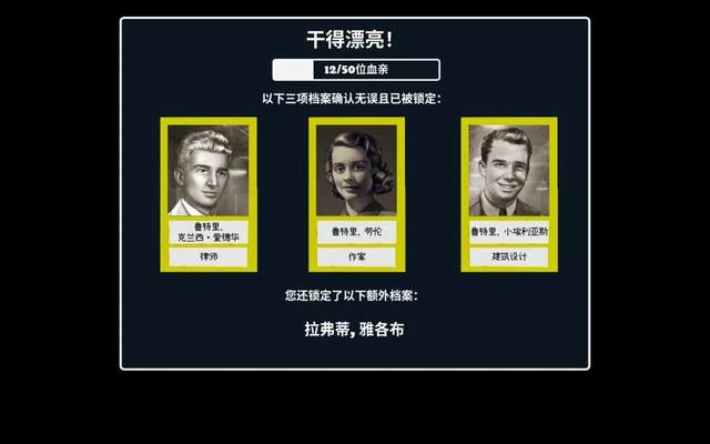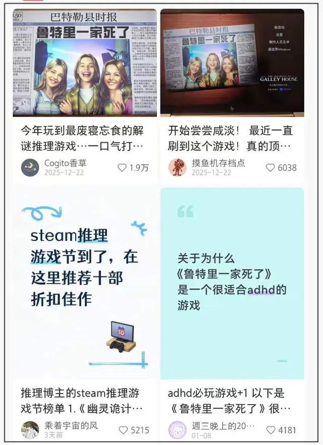 接着,去年年底,游戏实装了质量高到离谱的汉化,除了少数小错误外,翻译流畅、精准,不多加戏也不漏词。导致这个需要玩家注意大量细节、经常有语言双关线索,且人名繁多的游戏,竟然因为这汉化,变得毫无游玩障碍——就这样,鲁特里一家死了,同时也火了。