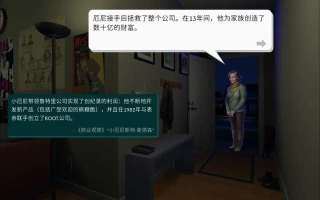 此外,你还会接触到各种都市传说:奇特的鲁特里诅咒、坠机谋杀理论、海外特工联合阴谋、糖果包装袋上藏着家族最大的秘密……它们有些是瞎扯,有些则真是关键线索,所有这些,都得由你自己判断。