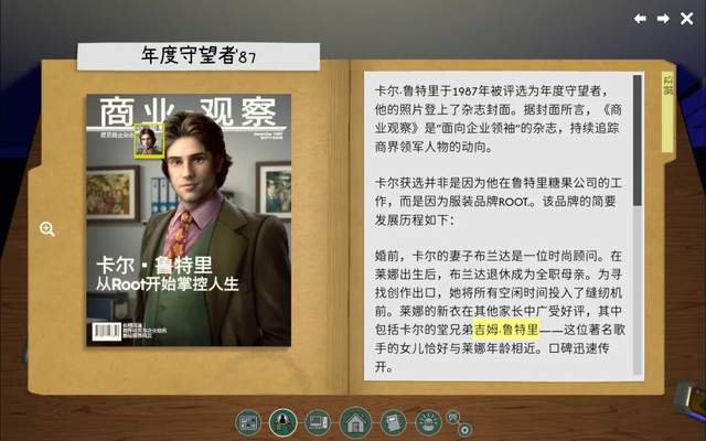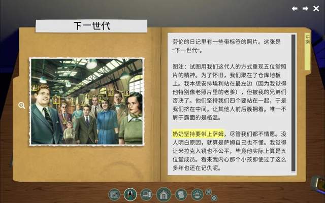 最后,那个终极鲁特里家族成员的照片,被藏在了极富象征意义的地方:近百年前,鲁特里一家的五位元老在工厂里合影,这张照片会被你反复观看,其故事是:当时家主只允许这五人出镜,哪怕他们的后代都不能露面,因为他们代表这个“老根树”家族的根茎。