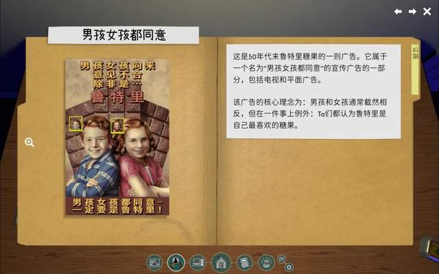 然后是一系列高难解密,比如意识到你之前看的一本广告史是“第二卷”,所以应该也存在一个“第一卷”,接着得知鲁特里糖果的包装袋,除了先前找到的“初版”外,还有个真正的初版,而那上面藏着这个被除名者的线索。
