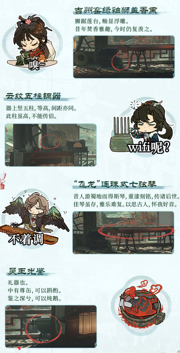 当然,《1999》不只是靠剧情设计去显得“国风”。在表达之外,他们还在《不老春》中铺下的诸多细节,同样是它这次被许多玩家认作“国风教科书”的原因。