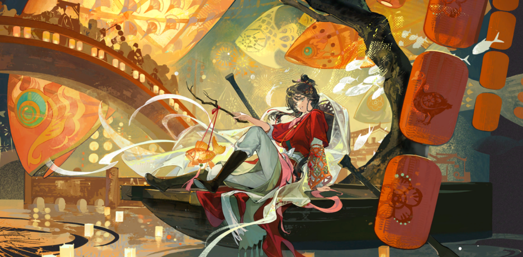 这里的徽派也不是一个贴上去的标签,更像一张细密的网,悄悄铺开:比如鹭鸶剪立绘里提着鱼灯,原型就是徽州一带的“嬉鱼灯”民俗,而她使用的剪纸法术,也是充满讲究、文气的徽派剪纸。