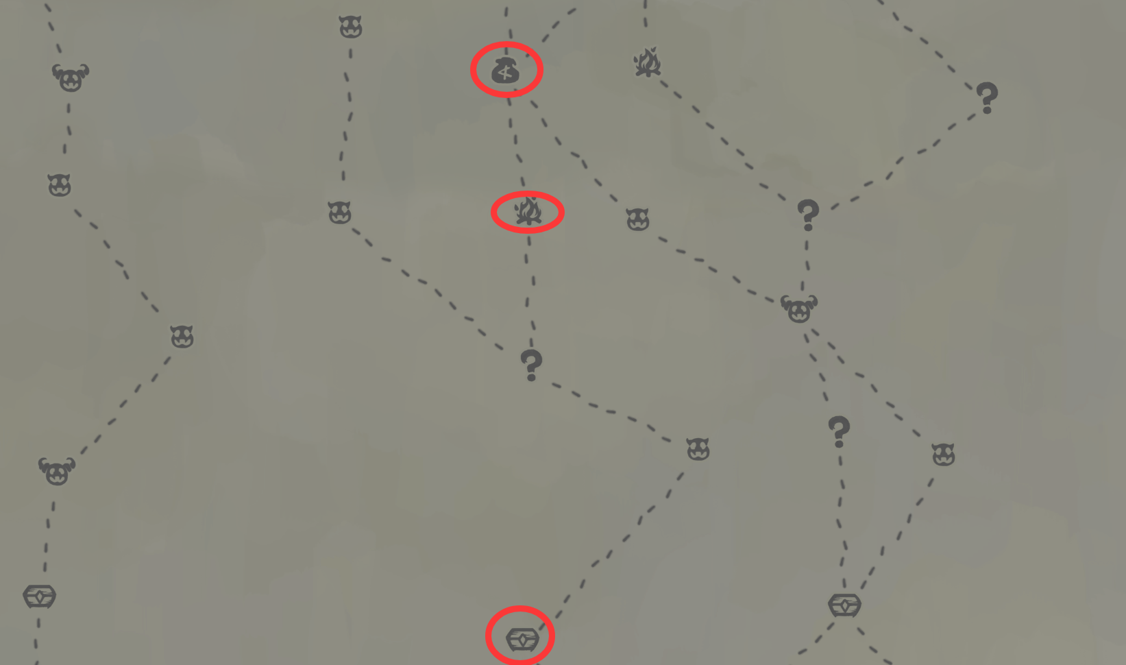 火堆/商店/宝箱:分别对应休息升级、买卡删卡、开遗物,是资源运营的关键节点。