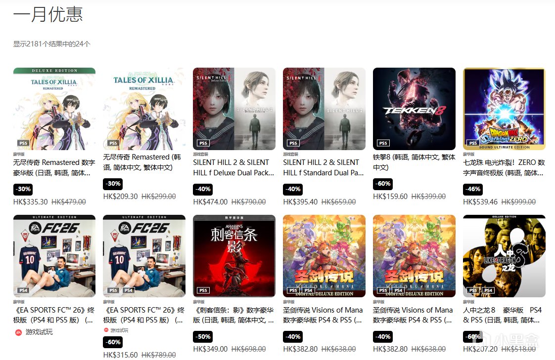 索尼PSN港服日前开启了名为【一月优惠】的活动,活动截止至2026年2月4日,总计2181个PS5/PS4数字版游戏参与此次活动,ACG吐槽君feichenpan给大家分享一下索尼2026年1月PS5/PS4数字版游戏推荐,如果有没推荐到的史低游戏,欢迎各位玩家去评论区留言,谢谢大家。