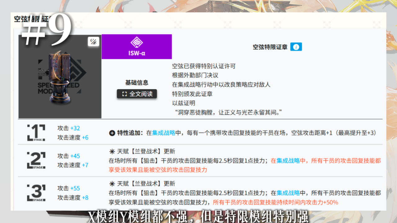 但是和空弦同理,特限模组很强,变成专门打肉鸽的干员了