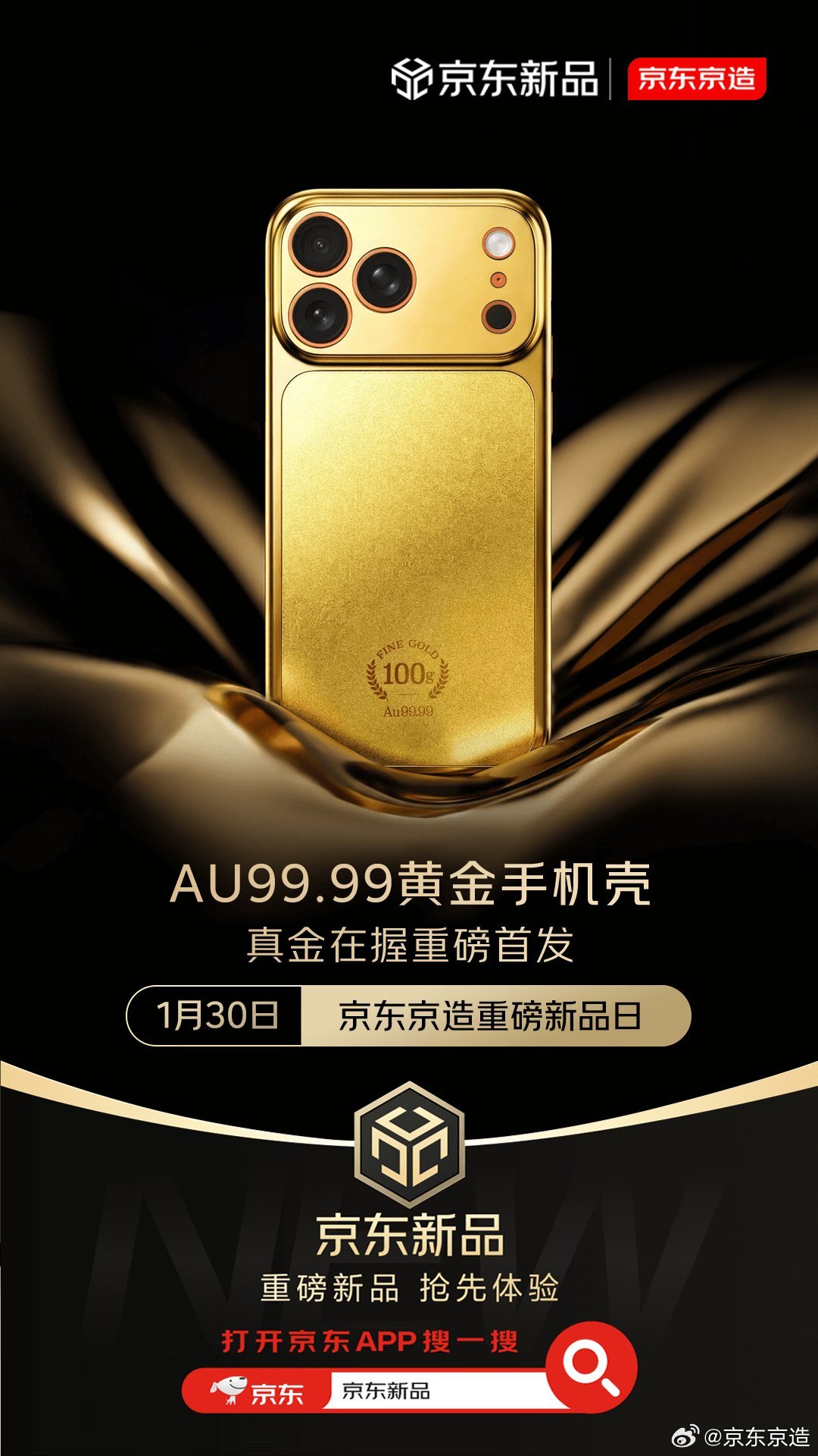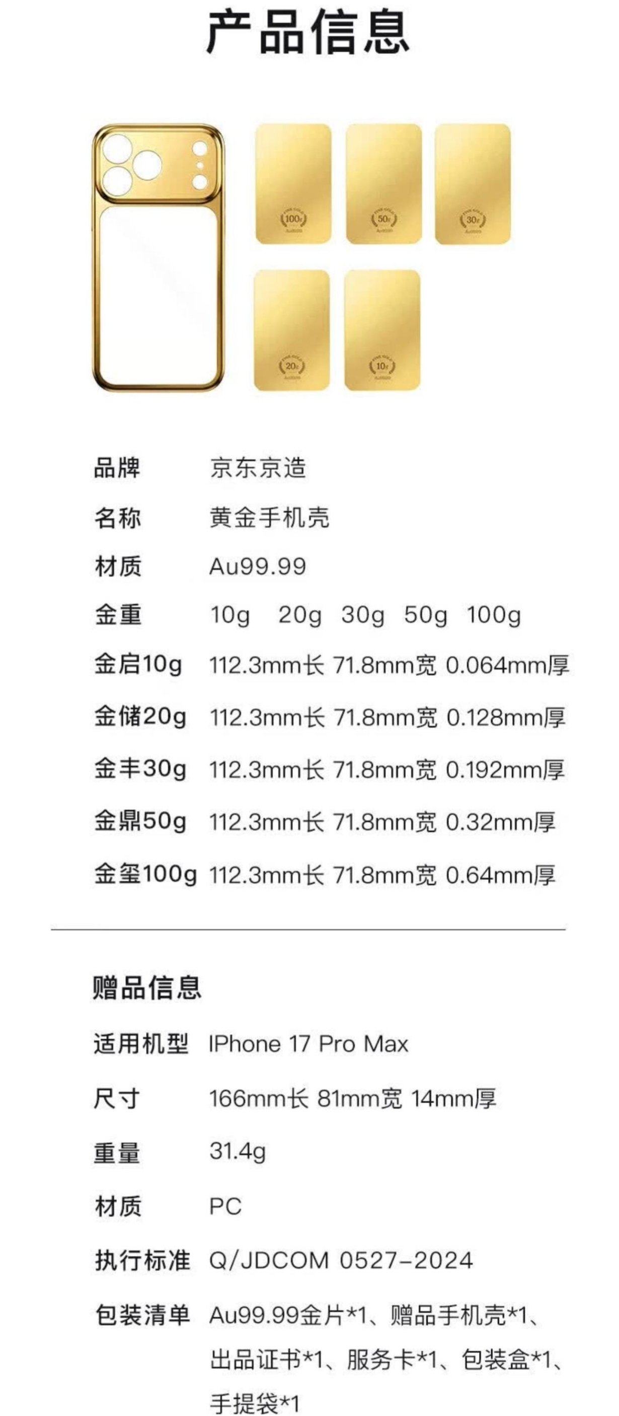 今日,京东京造宣布推出 iPhone 17 Pro Max 「Au99.99黄金」手机壳,不只是配饰,更是能握在手里的“硬资产”。注:不含手机