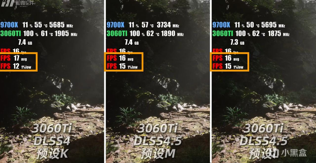 小结一下,K、L、M模型的画质排名是L>M>K,帧数方面,三者其实都差不多。所以,对于高性能显卡来说,无脑开启L模型即可。那么性能稍低一些的显卡呢?